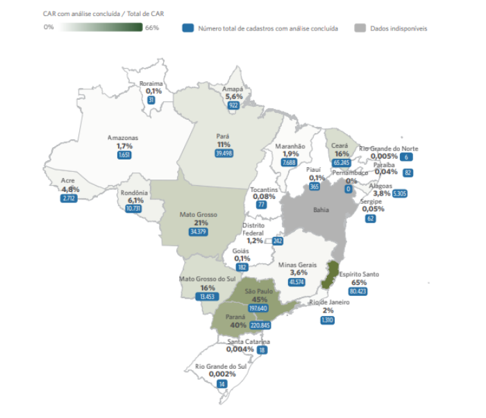 Grande parte dos registros permanece em etapas intermediárias de verificação, e o avanço das análises ainda depende da capacidade operacional dos estados e da qualidade das informações declaradas.